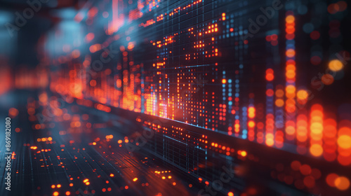 Obraz premium Black background with a glowing red LED display design concept financial graphs for showcase market insights effectively. advanced 3D effects.