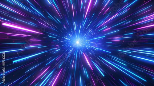 © Orod, Fototapeta premium Black background with blue and purple light streaks, abstract, digital art, dynamic motion.