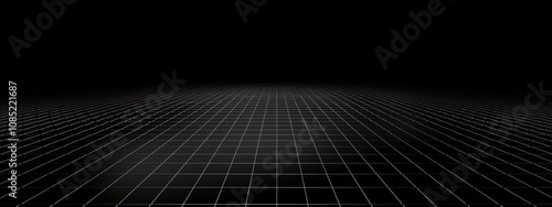 © ArpPSIqee, Naklejka premium Black Background with Grid Pattern for Design Banner Template, Featuring Minimalist Wallpaper with Copy Space on Black Background