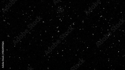 Fototapeta premium Black background with scattered white dust particles and light speckles