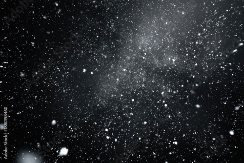 © Nisa, Obraz premium Black background with sparkling particles floating, simulating snow or stardust