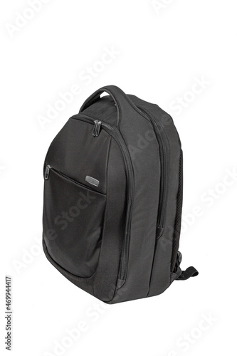 © Vladimir, Fototapeta premium Black backpack for a computer on a white isolated background. Business accessories.