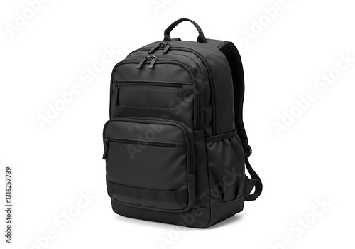 © zerostudio.id, Naklejka premium Black Backpack for Travel or Work with Multiple Pockets