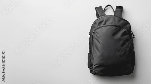 Fototapeta premium Black Backpack on White Background Top View with Generous Copy Space