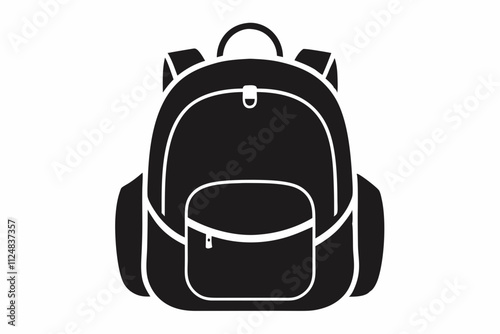 © Rabeya, Obraz premium Black Backpack Silhouette Vector on White Background