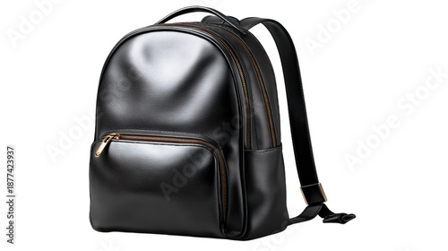 © tinnakorn, Fototapeta premium Black backpack with front zipper durable black backpack featuring a convenient front zipper for easy access to belongings
