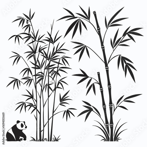 Obraz premium Black bamboo stalks with leaves and panda plant silhouette