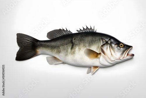 © Shabana, Fototapeta premium Black bass on white background, Ai Generated