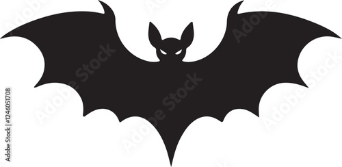 Naklejka premium "Black Bat Silhouette Icon Vector with White Background – Halloween Symbol"