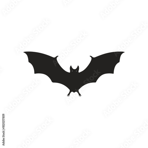 Fototapeta premium Black Bat Silhouette on White Background Halloween Design