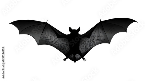 © Gomez, Obraz premium Black bat with spread wings, spooky silhouette, isolated, PNG style