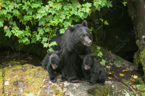 © Betty Sederquist, Fototapeta premium Black Bear and Two Cubs, Anan Creek