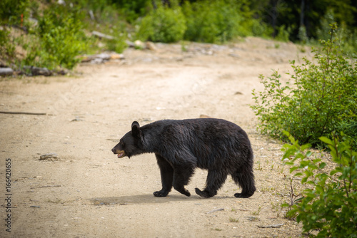 © Nick Fox, Fototapeta premium Black Bear crossing a road in forests of Banff National Park, Canada