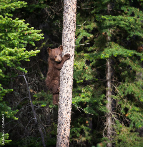Obraz premium Black bear cub in a tree