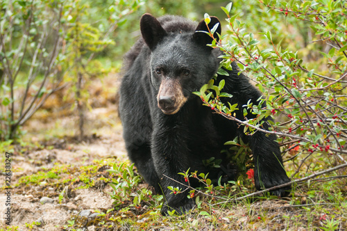 Fototapeta premium Black bear eating berries