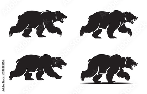 Naklejka premium Black bear silhouettes in action demonstrating power and strength on a white...