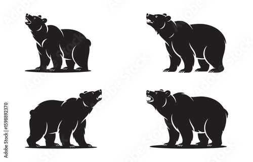 Naklejka premium Black bear silhouettes in various poses perfect for use in logos and wildlife designs