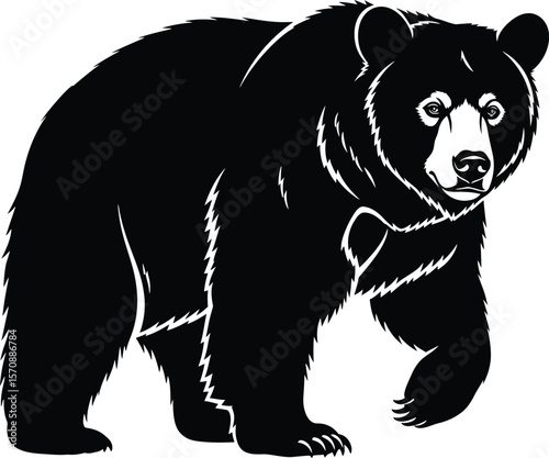 © Authentic, Fototapeta premium Black bear walking forward with white accents on a white background