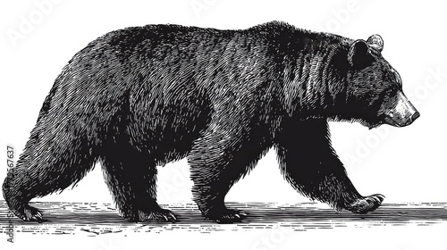 Obraz premium Black bear walking illustration on white background detailed artistic style