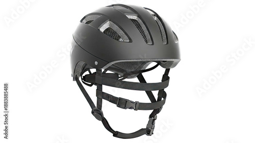 © Cacswi, Fototapeta premium Black Bicycle Helmet with Straps and Buckle