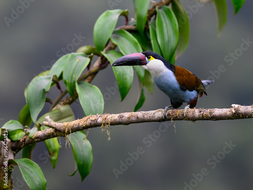 © FotoRequest, Naklejka premium Black-billed Mountain-Toucan Perched on a Mossy Branch in Rainforest