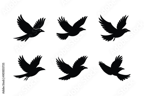 Fototapeta premium Black Bird Flying Silhouette Vector Illustration