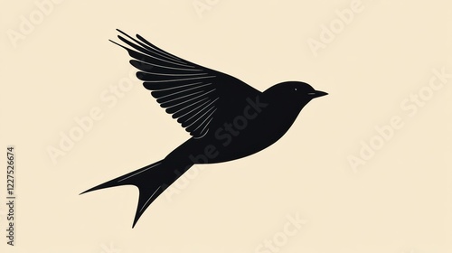 © Anat art, Fototapeta premium Black bird in flight against a soft background showcasing elegant wing movement and graceful silhouette. Generative AI