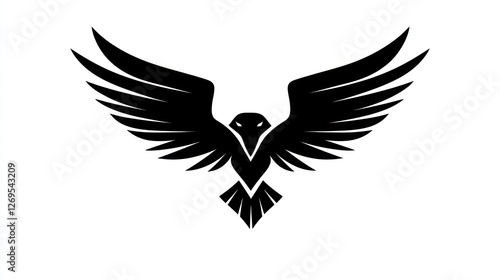 Fototapeta premium Black bird in flight, graphic design, silhouette