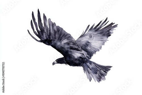 © GenBy, Naklejka premium Black bird in flight, white isolate background
