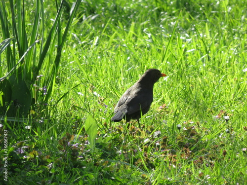 © Maj, Fototapeta premium Black bird on grass