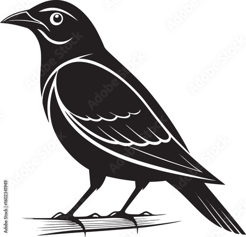 © MDYeakub, Fototapeta premium Black bird perched on branch white