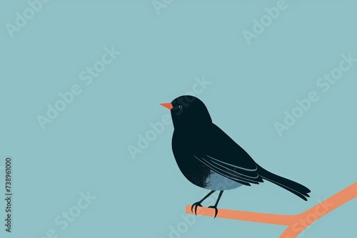 © Vit, Obraz premium Black Bird Perched on Tree Branch