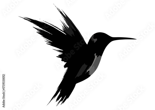© Natalia, Obraz premium Black bird silhouette with geometric wings on white background and copy space