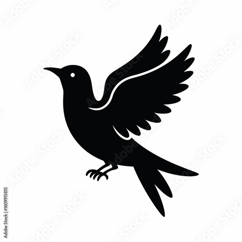 Fototapeta premium Black Bird Silhouette with Spread Wings Design