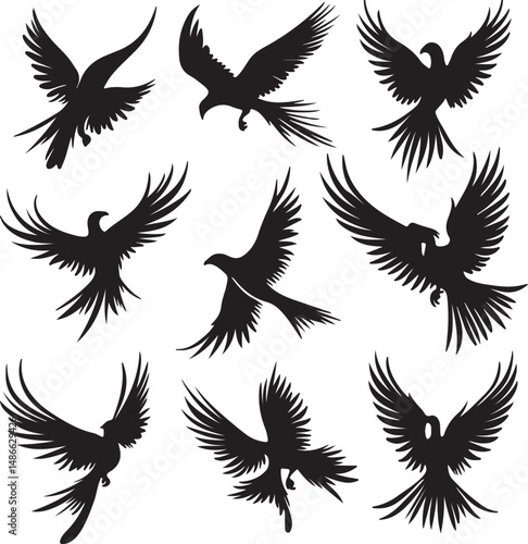 © Ridoy-Art , Obraz premium Black Bird Silhouettes: Dynamic Eagle Wing Spread Vector Art