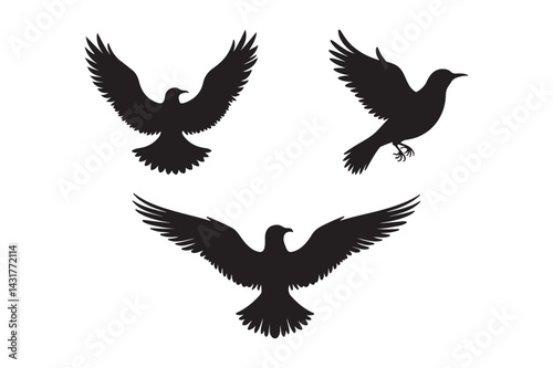 Obraz premium Black Bird Silhouettes Flying Vector Flying Bird Clipart