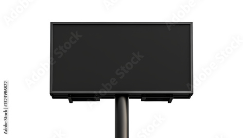 © MdMojnu, Naklejka premium Black blank billboard sign on a pole, isolated mockup template with a transparent background