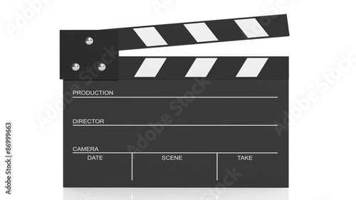 © viperagp, Fototapeta premium Black blank clapperboard isolated on white background