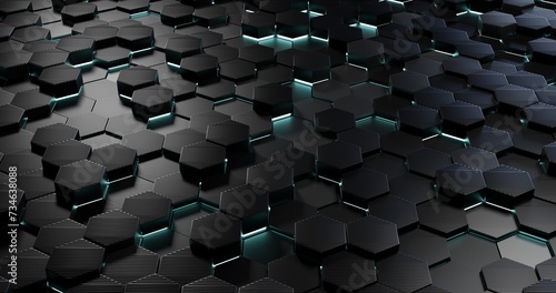© Gayuhdesu, Obraz premium Black blue hexagons background pattern 3D rendering. sci-fi background