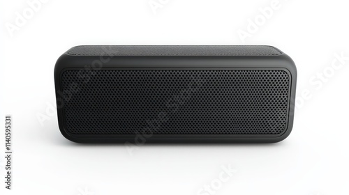 Obraz premium Black bluetooth speaker with mesh grill on white background