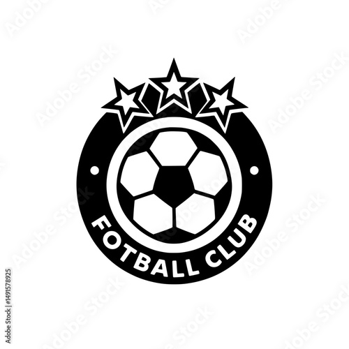 Fototapeta premium Black Bold Vector Football Club Logo with Ball and Three Stars