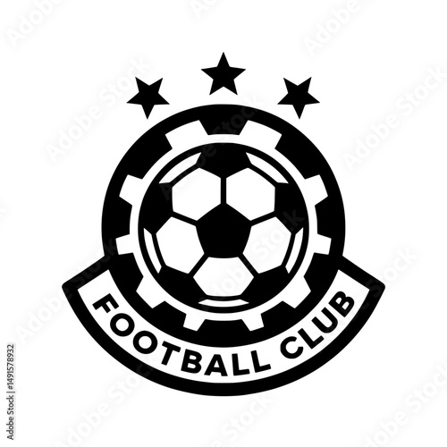 Fototapeta premium Black Bold Vector Football Club Logo with Ball and Three Stars
