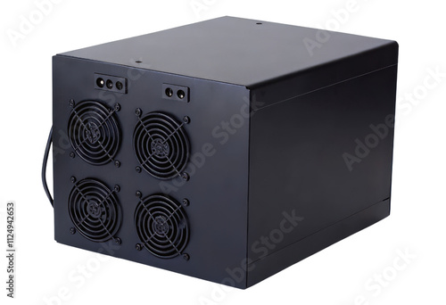 Fototapeta premium Black box with multiple cooling fans isolated with transparent background