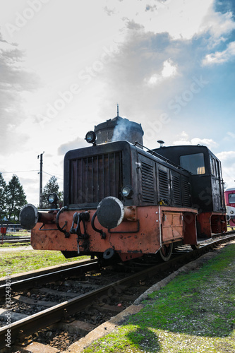 © Zoli, Obraz premium Black & brown old diesel locomotive stationary on railway.