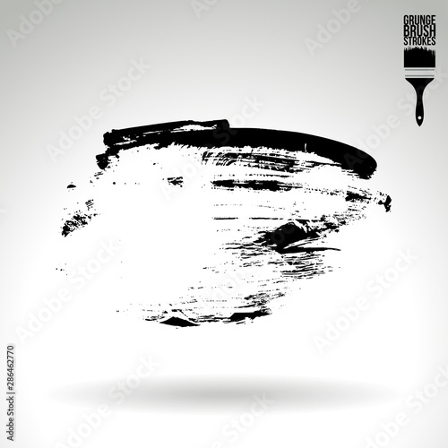 Fototapeta premium Black brush stroke and texture. Grunge vector abstract hand - painted...