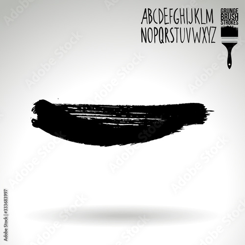 © monum, Fototapeta premium Black brush stroke and texture. Grunge vector abstract hand - painted element. Underline and border design.