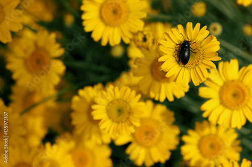 Obraz premium Black bug at yellow flower
