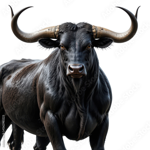 © Sejjil, Fototapeta premium Black bull standing alone on a white background