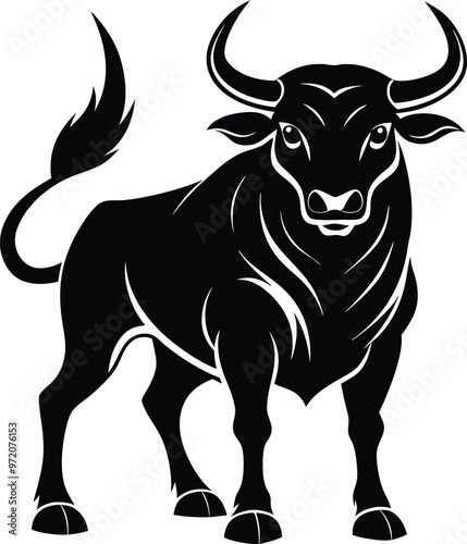 © PNG AI, Naklejka premium black bull vector illustration silhouette, Print
