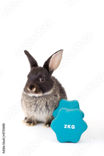 © Ferenc Szelepcsenyi, Obraz premium black bunny and a weight